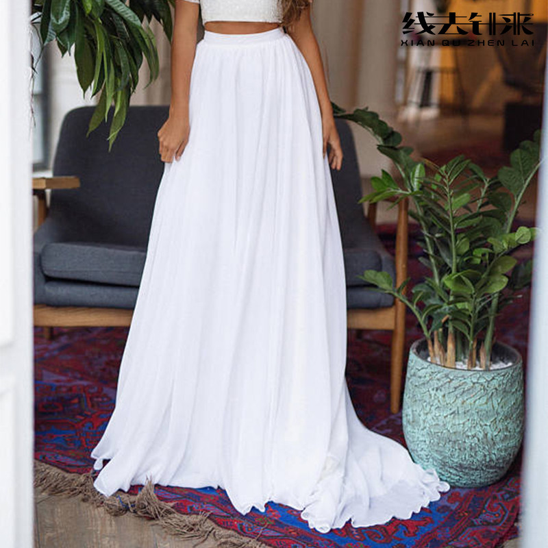 女裝/女士精品^半身裙^^^江蘇 連云港^旅拍攝影白色雪紡半身裙輕婚紗新款法式半身拖尾舞會(huì)宴會(huì)活動(dòng)主持