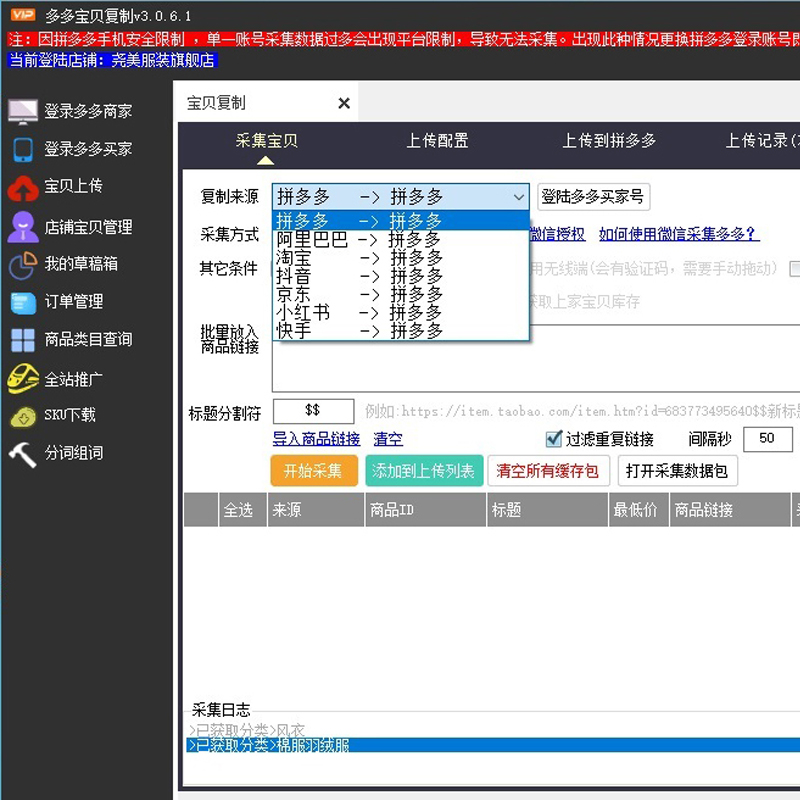 淘寶多多上貨軟件批量鋪貨天貓阿里京東抖店快手上架破軍星工具箱