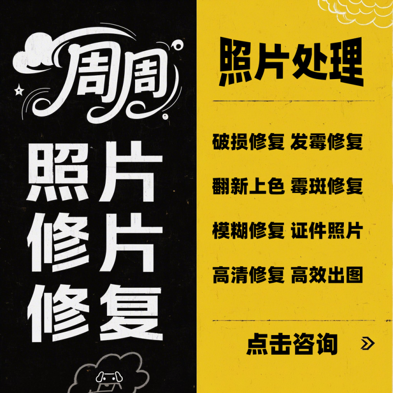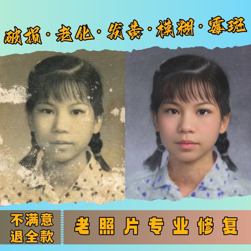 老照片修復(fù)翻新還原黑白上色修證件照ps精修圖片上色模糊變清晰