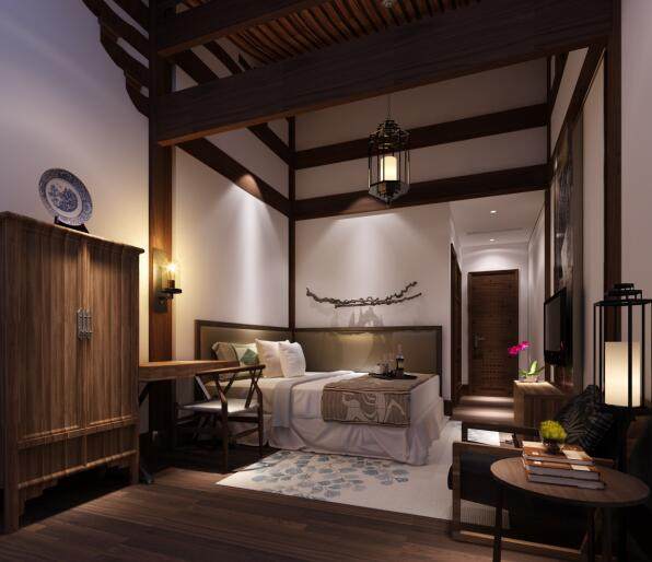 精品民宿酒店室內(nèi)設計方案CAD施工圖全套+中式民宿效果圖參考資料