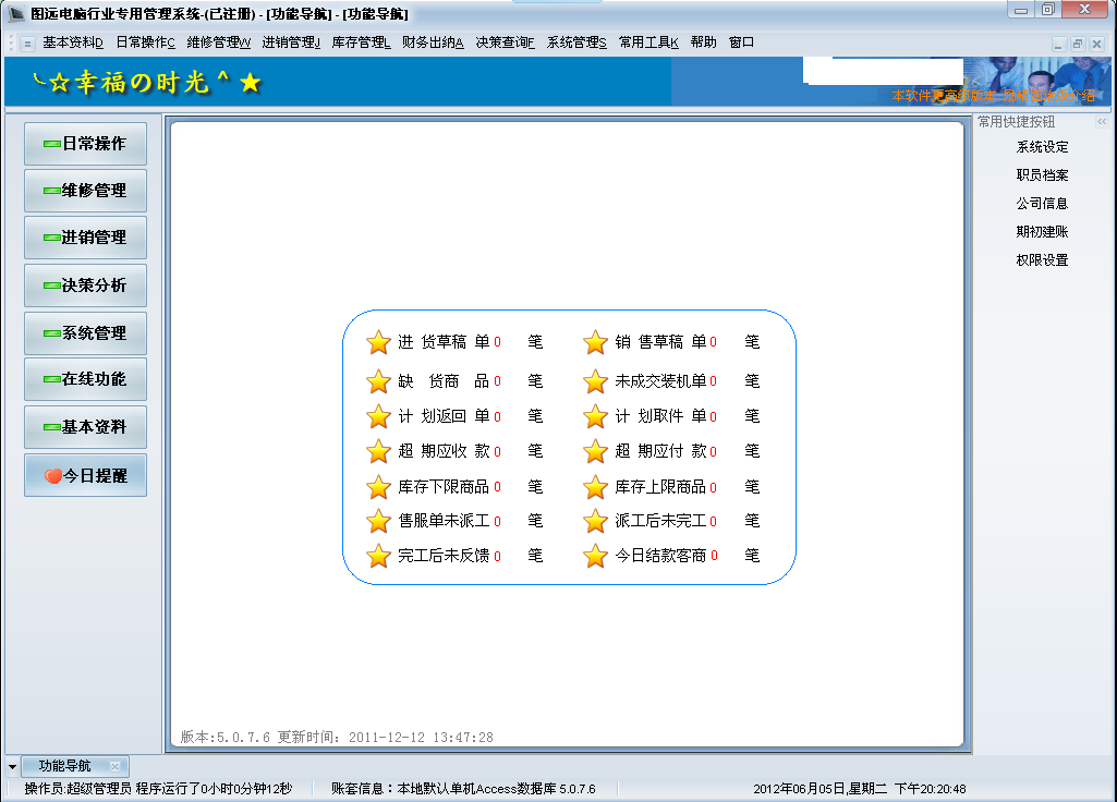 非常新圖遠(yuǎn)電腦行業(yè)管理系統(tǒng)標(biāo)準(zhǔn)版7.6(5.0.7.6單機(jī)版/網(wǎng)絡(luò)版)