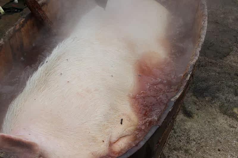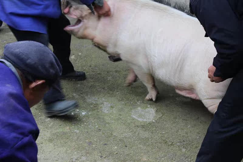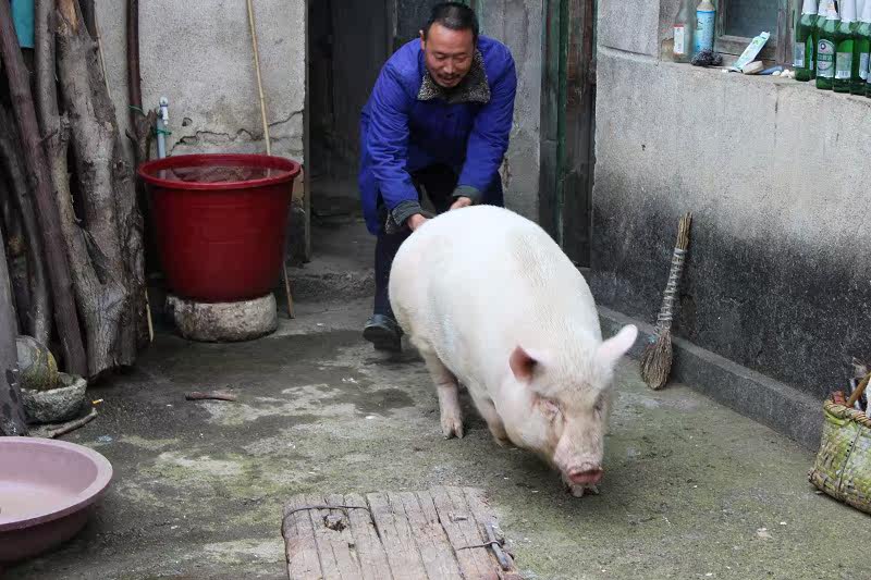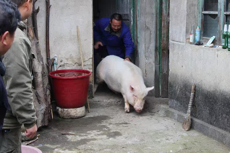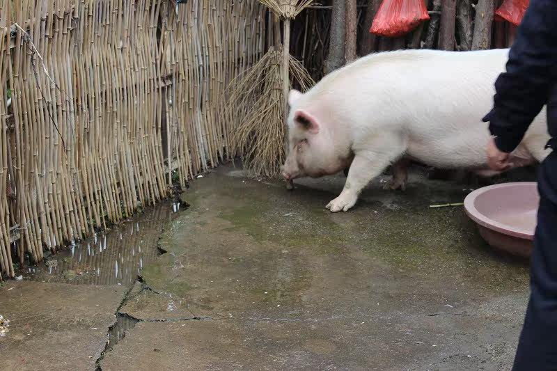 果然是老師父,一個人就將豬趕了出來,只是不知是趕,還是豬自己以為可以放它出來了,一個勁放外面沖,要看看這豬欄外的世界。