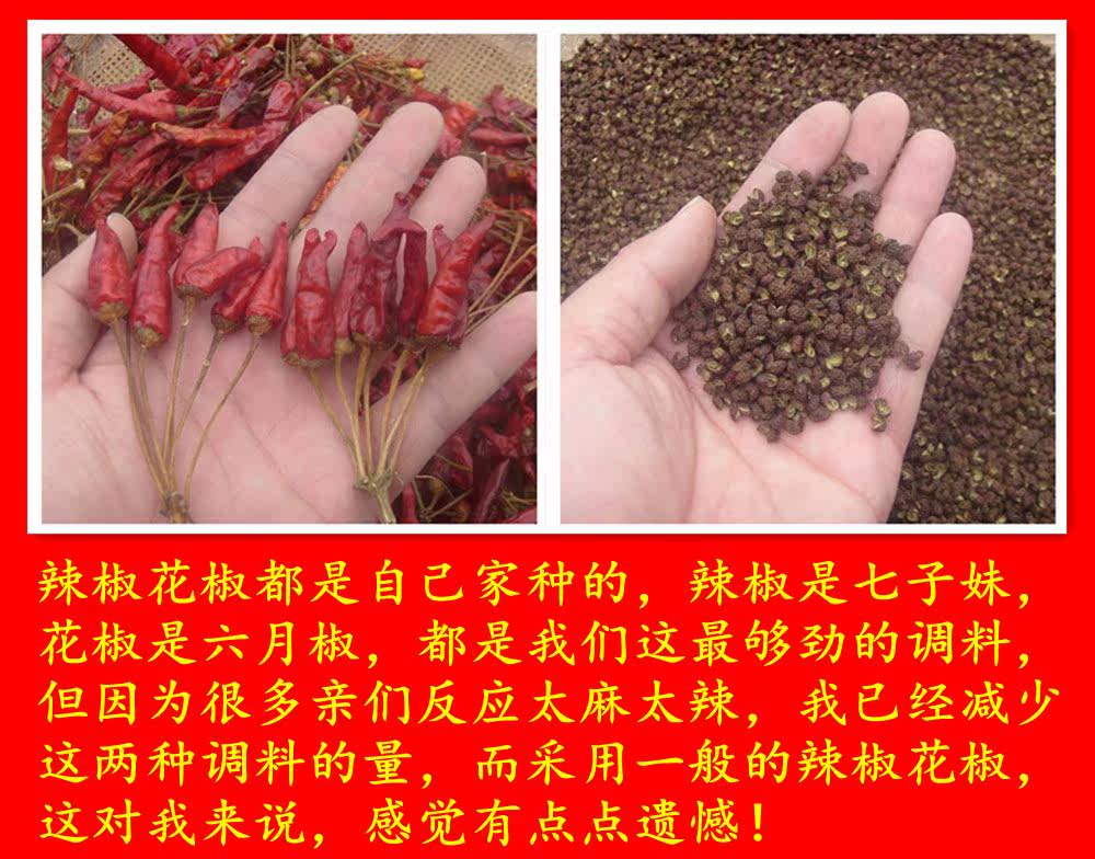 - 配料表:豬肉、豬小腸、辣椒、花椒、鹽等