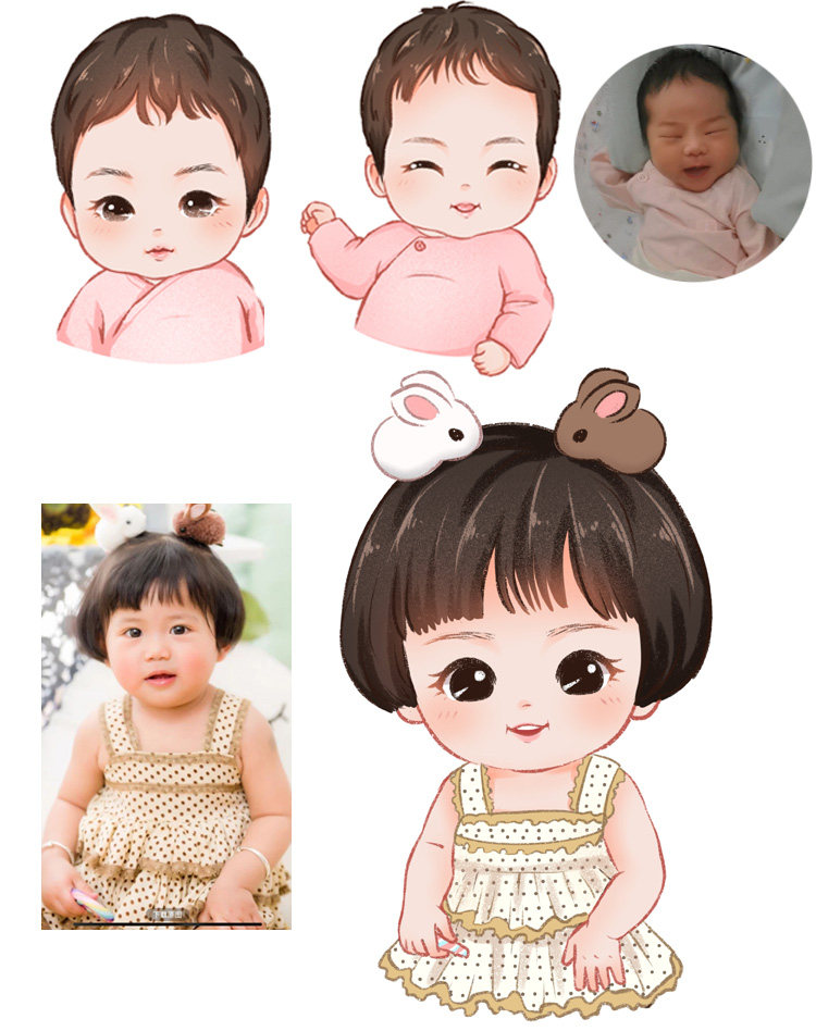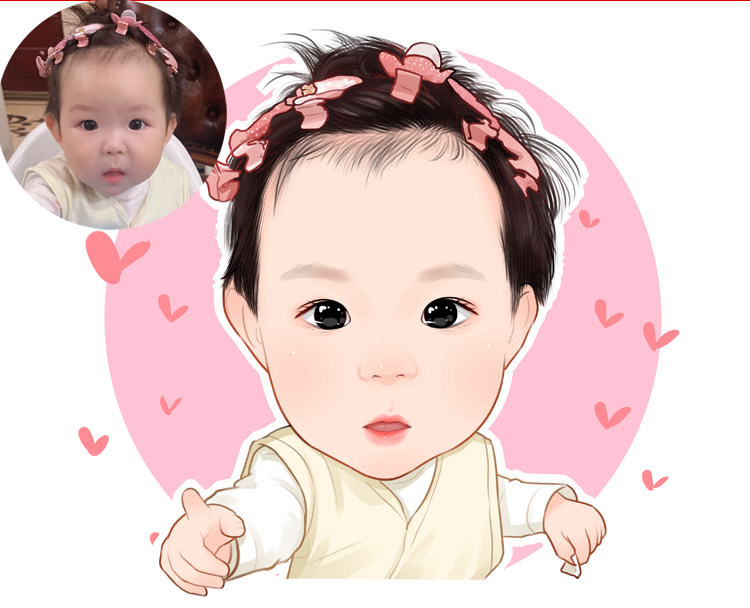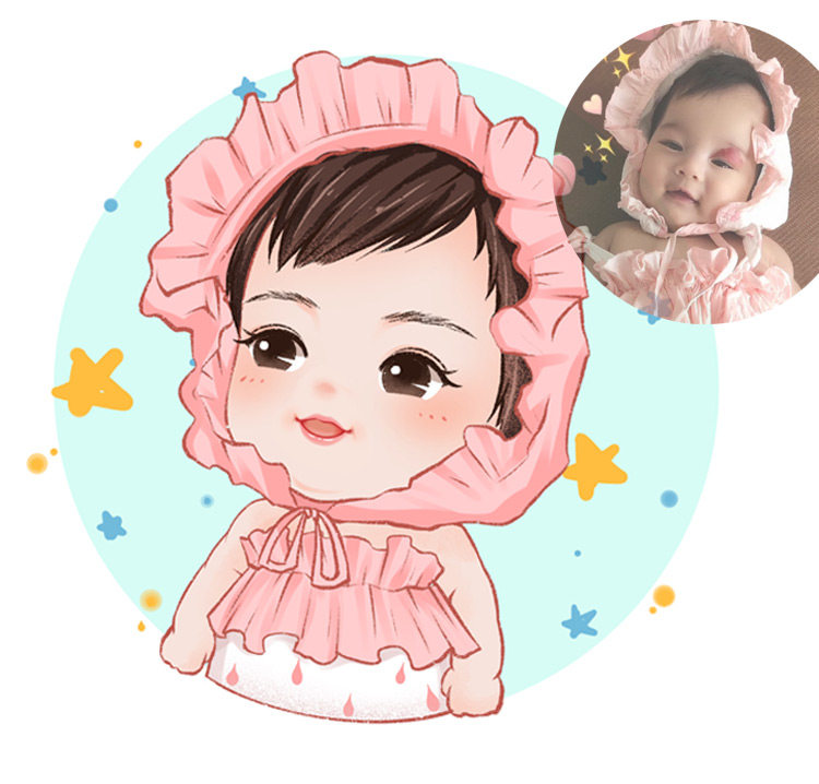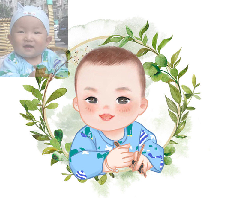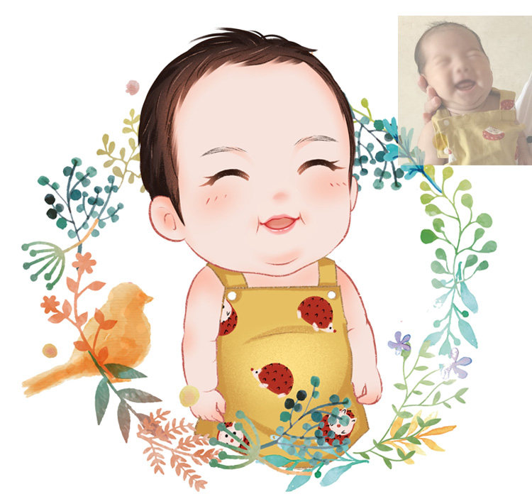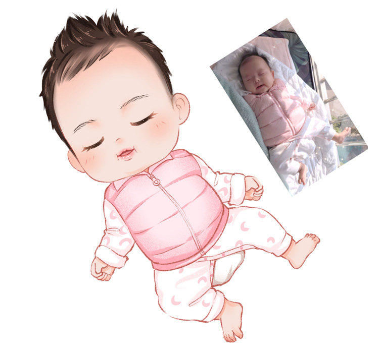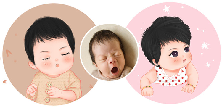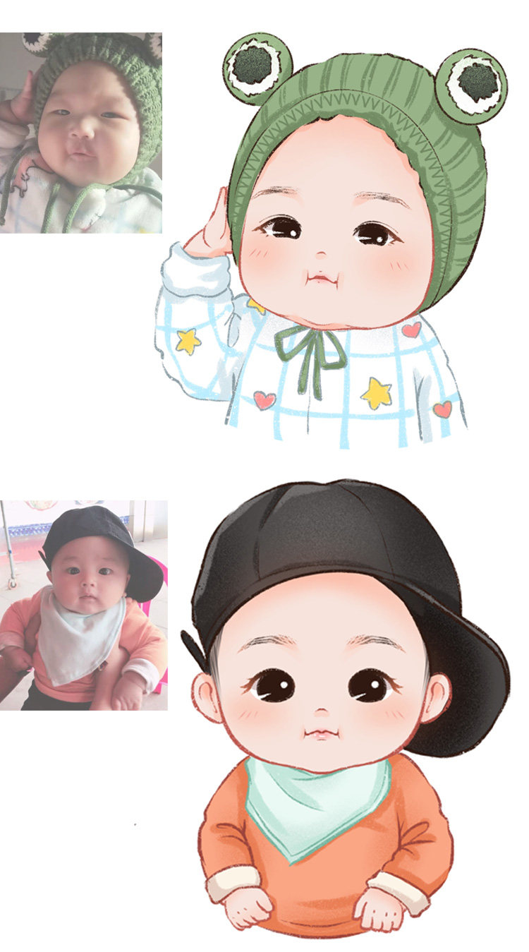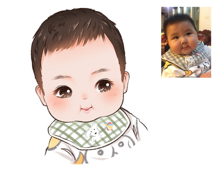 阿邊嬰兒寶寶照片手繪定制胎毛畫(huà)兒童q版新生兒卡通可愛(ài)漫畫(huà)頭像
