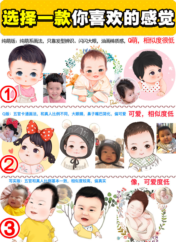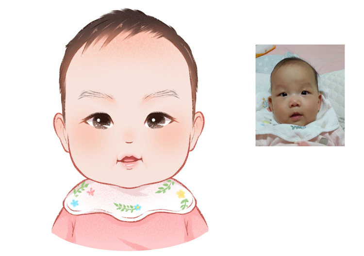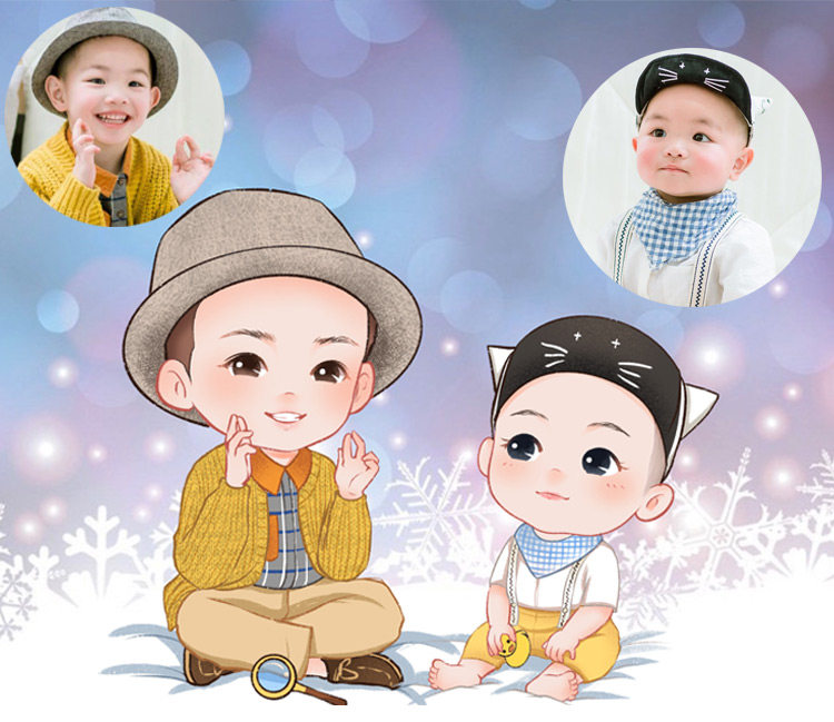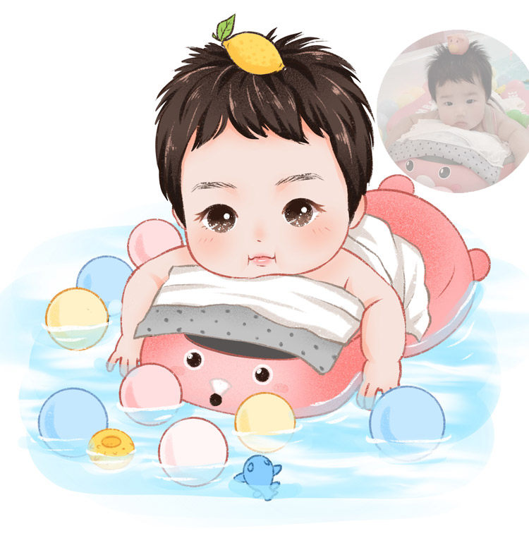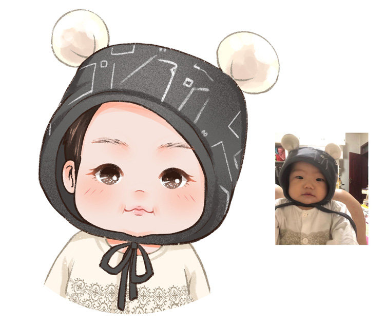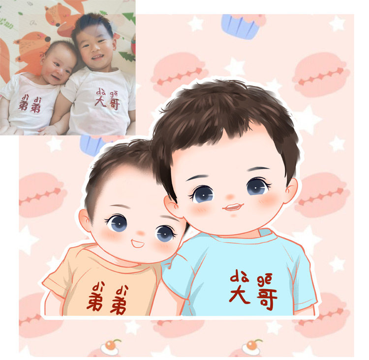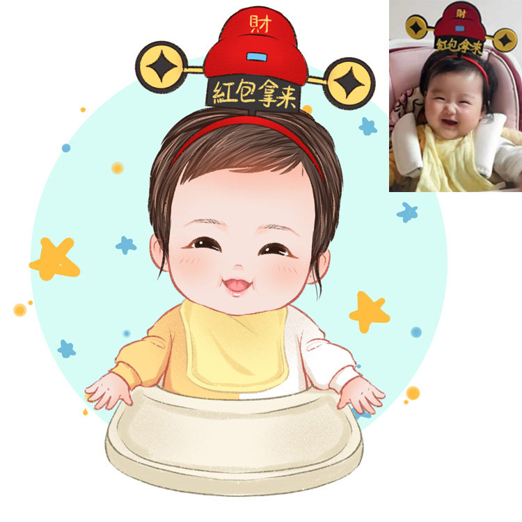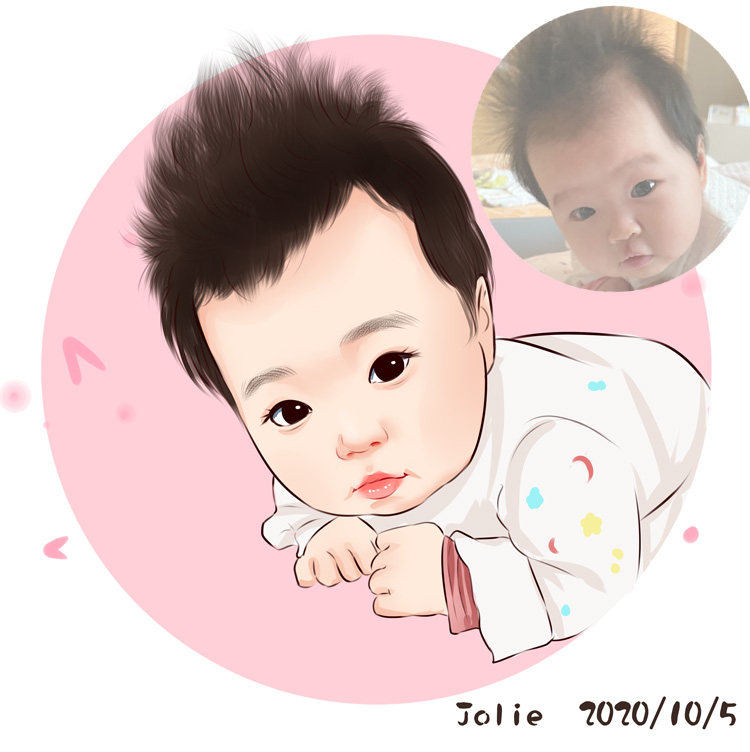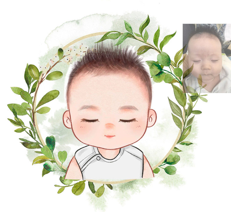 阿邊嬰兒寶寶照片手繪定制胎毛畫(huà)兒童q版新生兒卡通可愛(ài)漫畫(huà)頭像