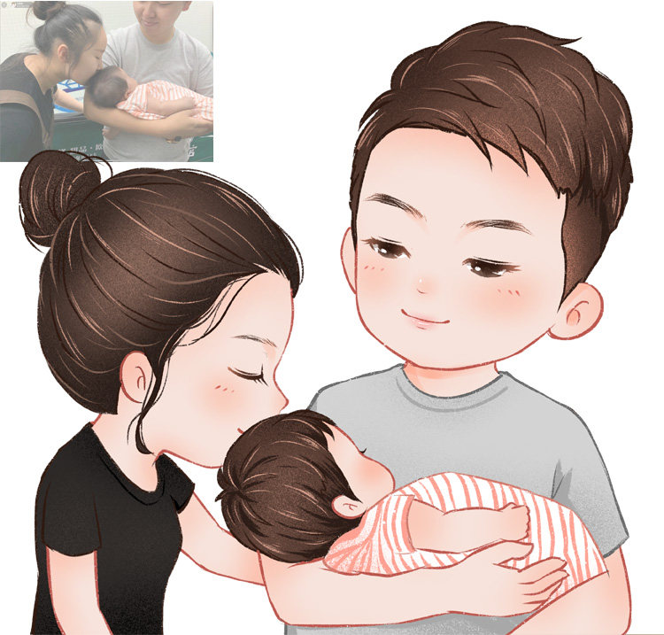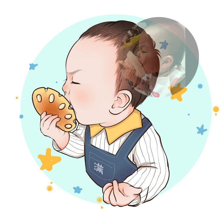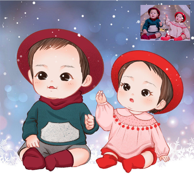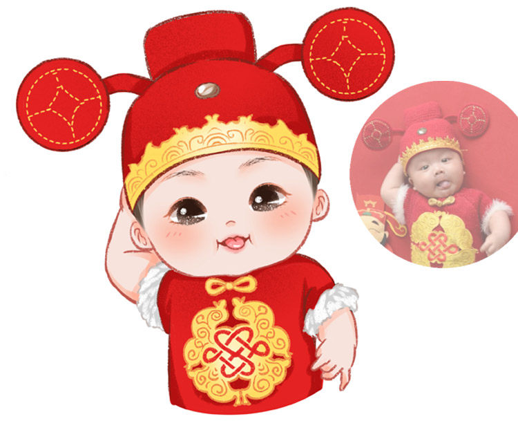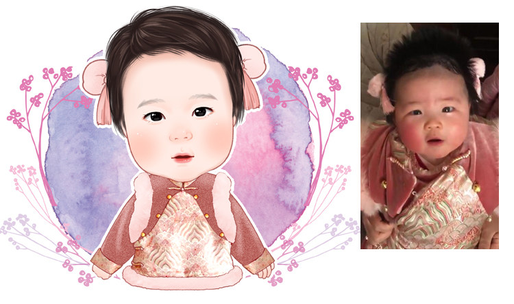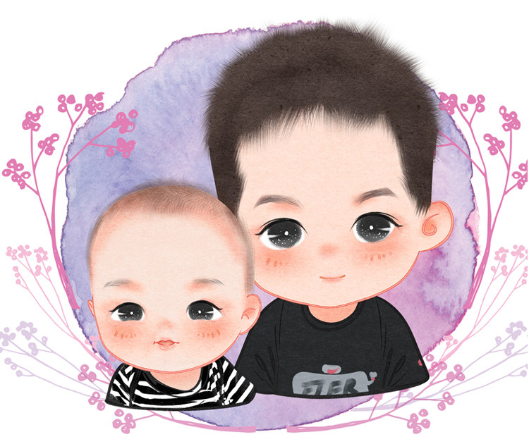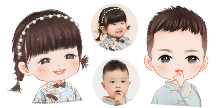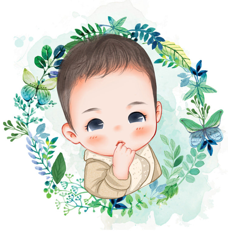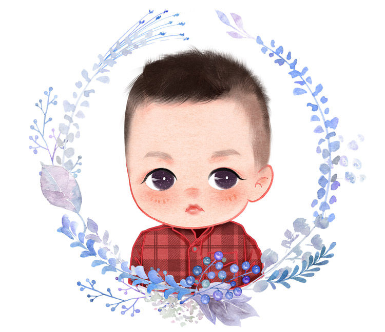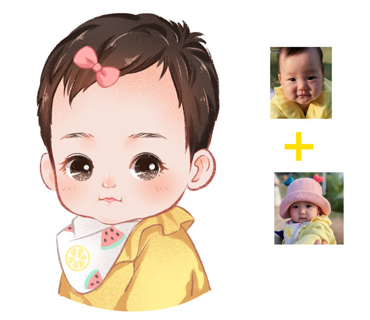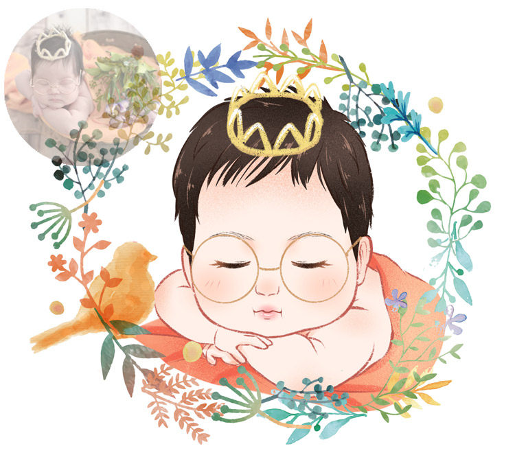 阿邊嬰兒寶寶照片手繪定制胎毛畫(huà)兒童q版新生兒卡通可愛(ài)漫畫(huà)頭像