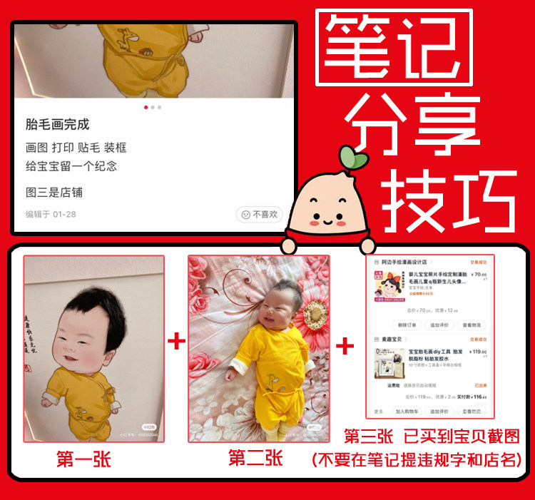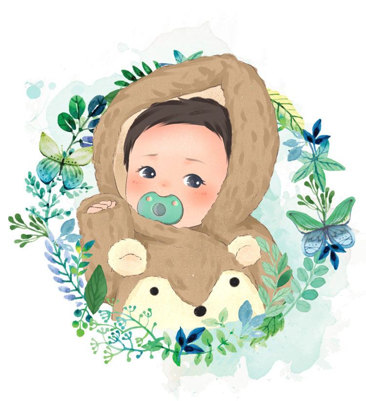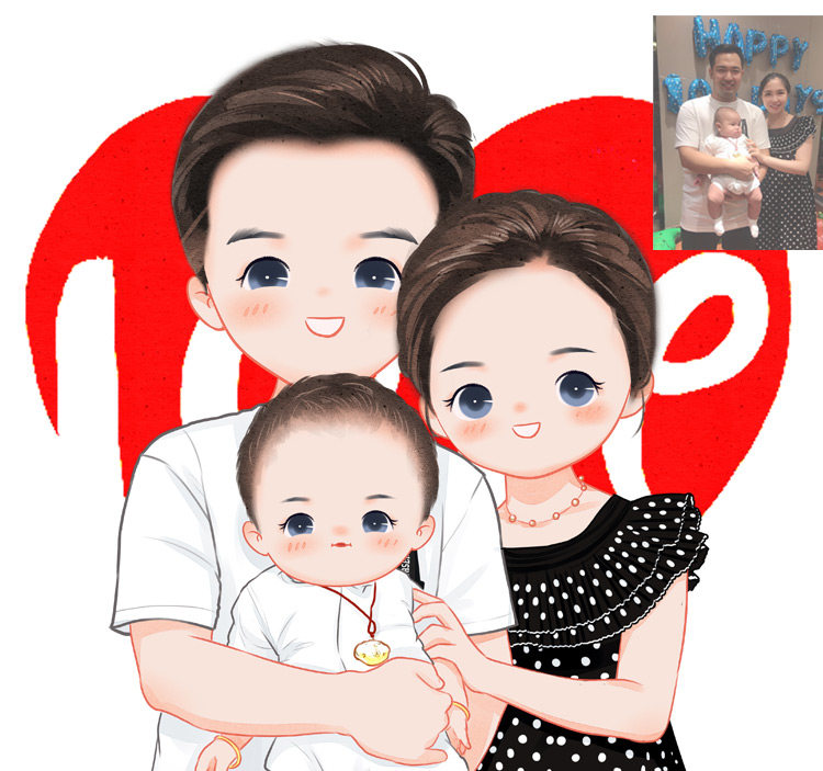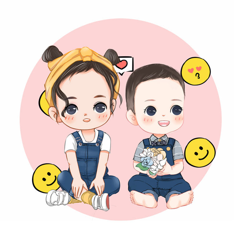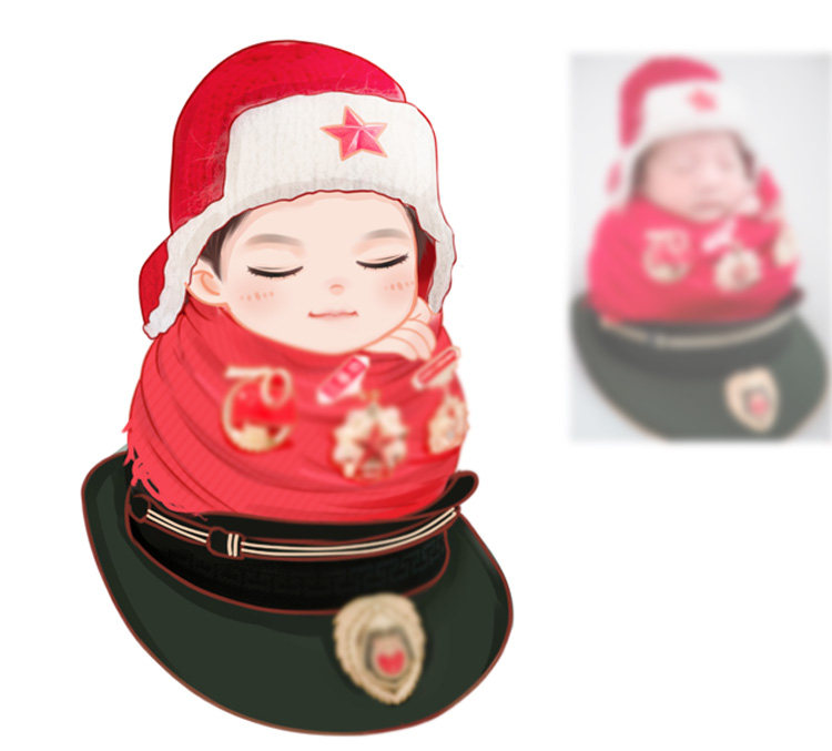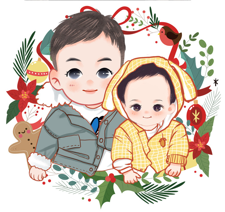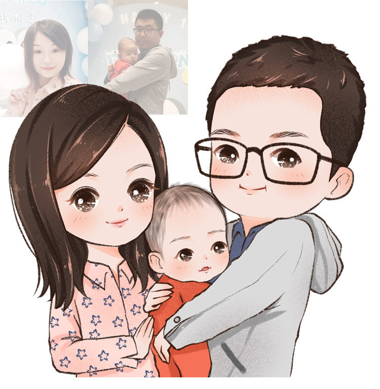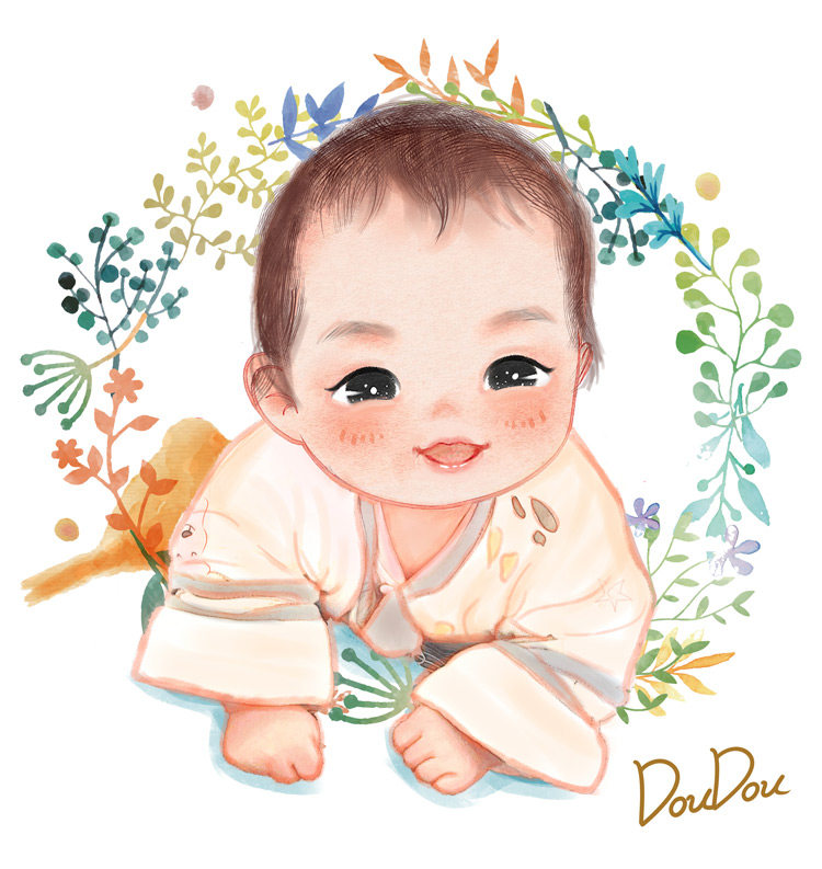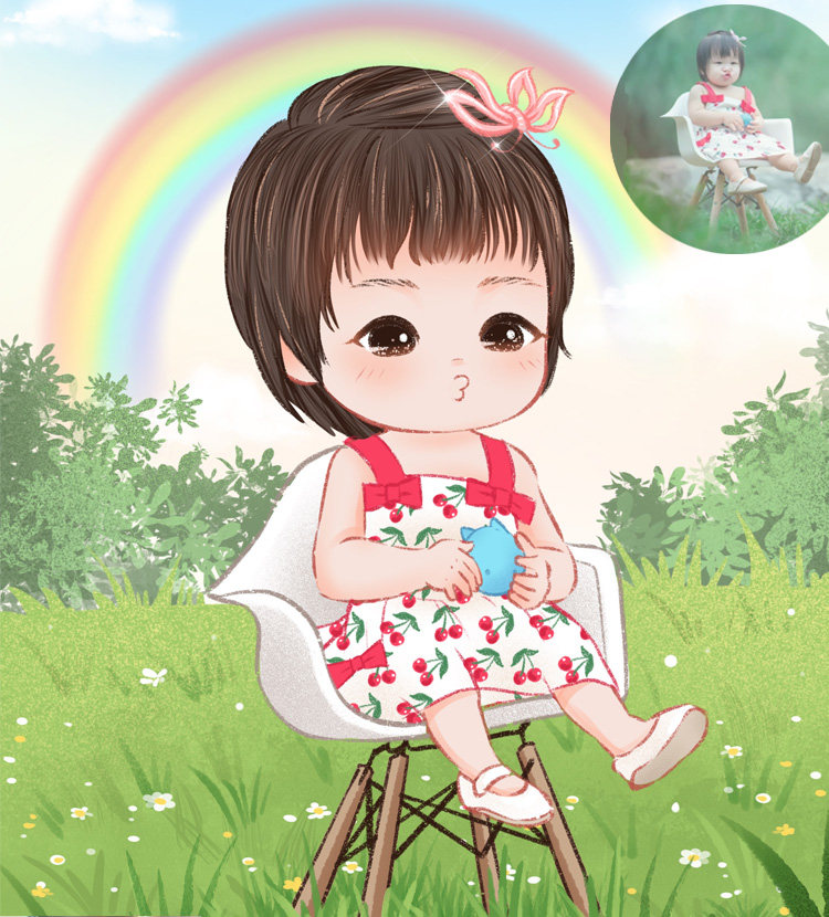 阿邊嬰兒寶寶照片手繪定制胎毛畫(huà)兒童q版新生兒卡通可愛(ài)漫畫(huà)頭像