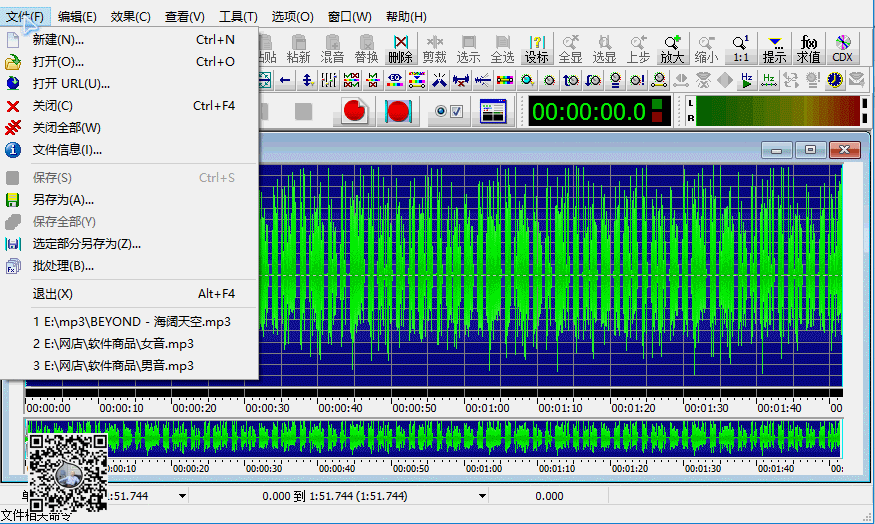 一個集聲音編輯,播放,錄制,和轉(zhuǎn)換的音頻工具,體積小巧,功能卻不弱。可打開的音頻文件相當(dāng)多,包括WAV, OGG, VOC, IFF, AIF, AFC, AU, SND, MP3, MAT, DWD, SMP, VOX, SDS, AVI, MOV, APE 等音頻文件格式,你也可以從 CD 或 VCD 或 DVD 或其它視頻文件中提取聲音。內(nèi)含豐富的音頻處理特效,從一般特效如多普勒、回聲、混響、降噪到品質(zhì)高的公式計(jì)算(利用公式在理論上可以產(chǎn)生任何你想要的聲 音),效果多多。