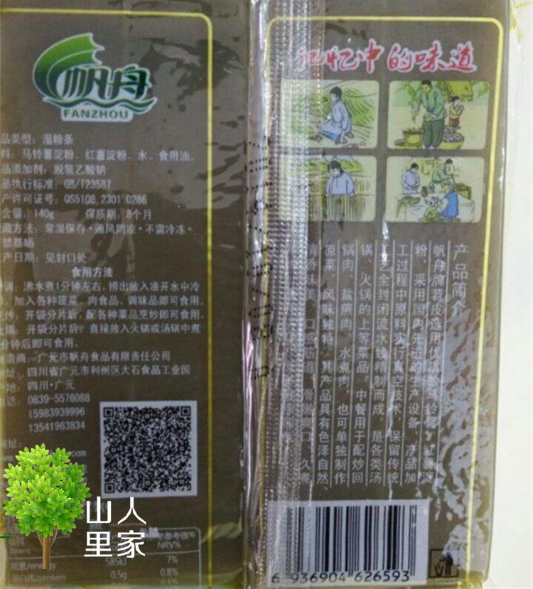 - 配料表:馬鈴薯淀粉、紅薯淀粉、水、