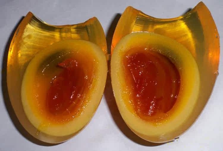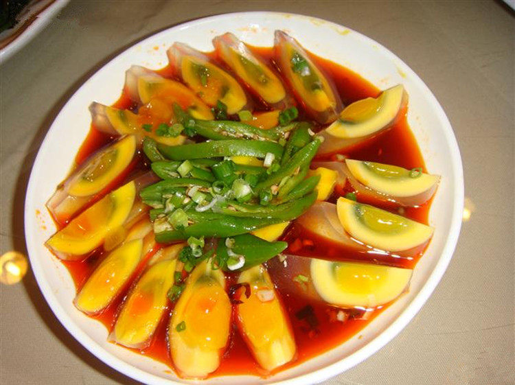 在超市賣的一水全是黑黑的皮蛋,顏色深,也不能說黑色的不好,黑皮蛋和我們黃皮蛋制作工藝有些差別,用料成份也重很多,不信親試一下就知道了,我們不喜歡那種堿味蓋過皮蛋原味。我們家鄉(xiāng)基本都是草木灰手工制作的黃皮蛋,口味清爽,口口回香,不澀口。安全健康。
