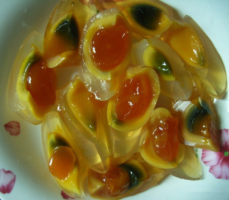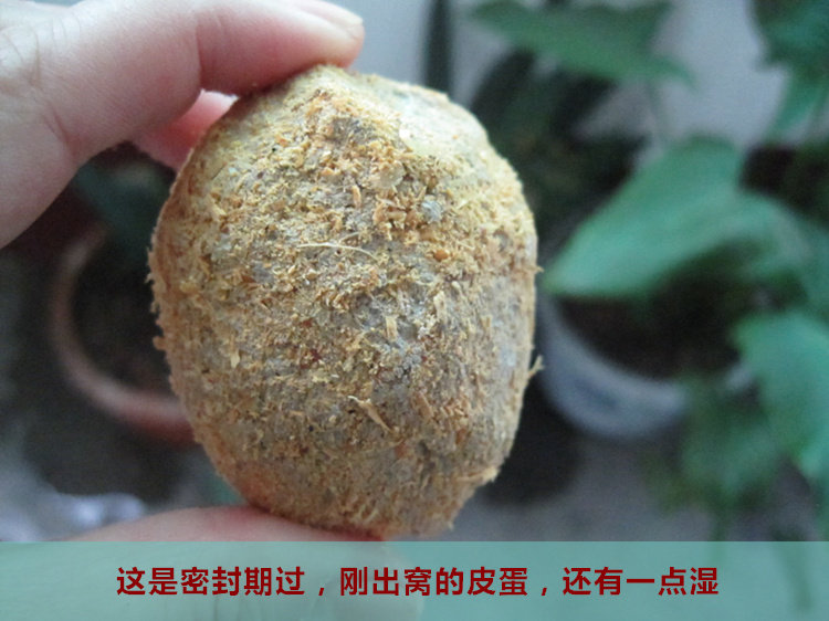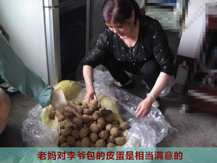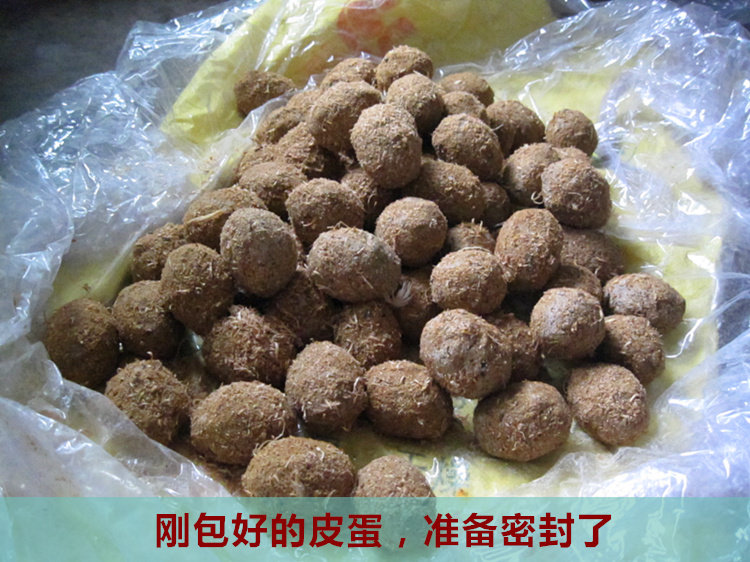 皮蛋我們一般是每次只包兩三百個(gè),出一窩賣一窩,這樣發(fā)給親的皮蛋都是新鮮出窩的,口感也是非常嫩非常好的,時(shí)間放長(zhǎng)了的皮蛋就會(huì)變得稍硬,喜歡硬點(diǎn)的親,可以放一段時(shí)間再吃,一個(gè)月后松花就會(huì)顯現(xiàn)出來喲。