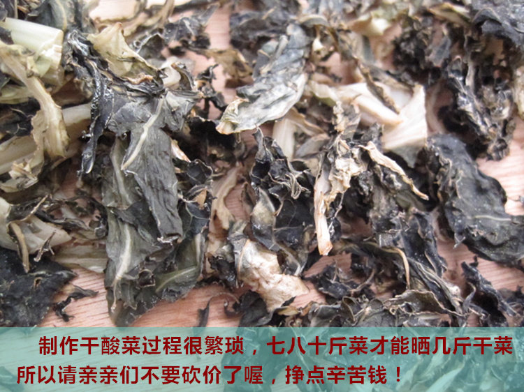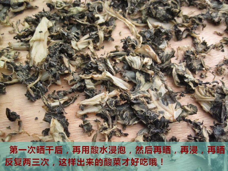 廣的親都知道 ,做酸菜的工序必須要燙過(guò)打面水,所以曬干后的干酸菜上面會(huì)有白色的痕跡,那是曬干的面水哈,不是霉喲,霉一般都是長(zhǎng)毛毛的,親們可以辨認(rèn)下,不要誤會(huì)喲!