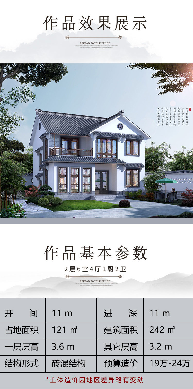 二層新中式別墅設(shè)計(jì)圖紙農(nóng)村兩層自建房施工圖紙樓房效果圖建筑圖