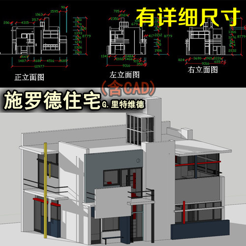 建筑大師施羅德住宅別墅作品分析su(Sketchup)模型+cad平面立面h