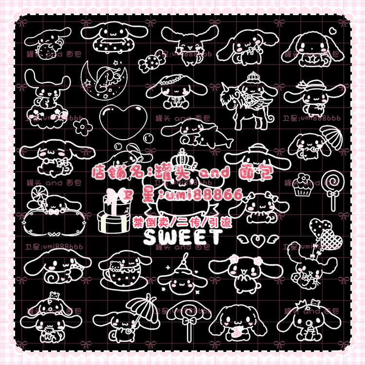 124號自制玉桂狗白色描邊水印美化設計素材35個PNG透明免摳素材