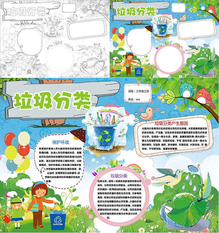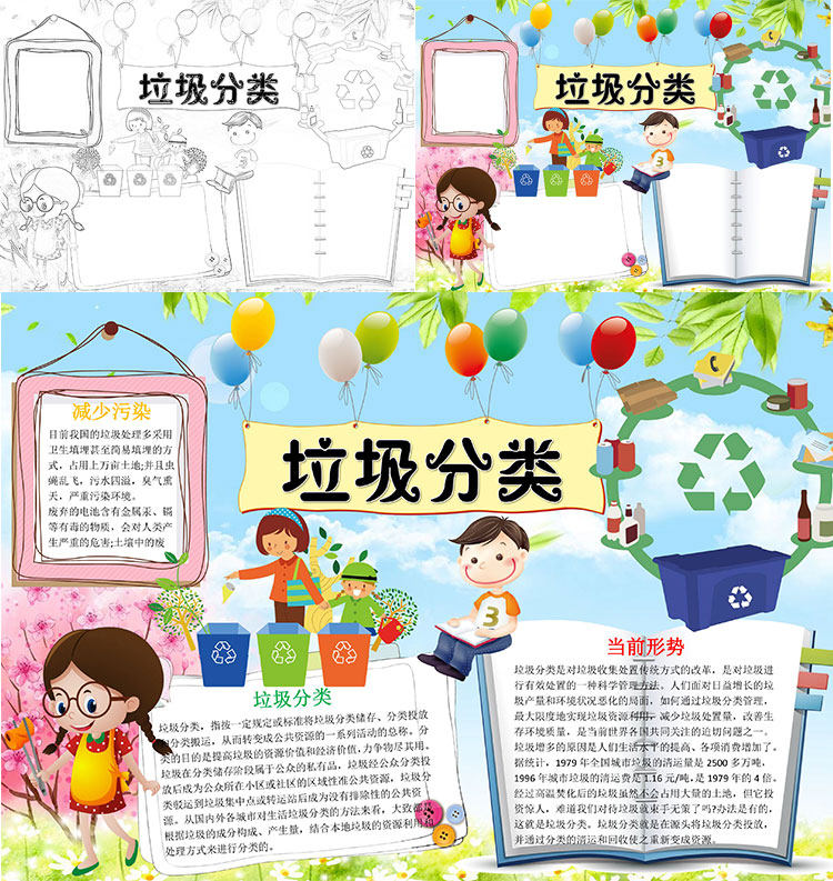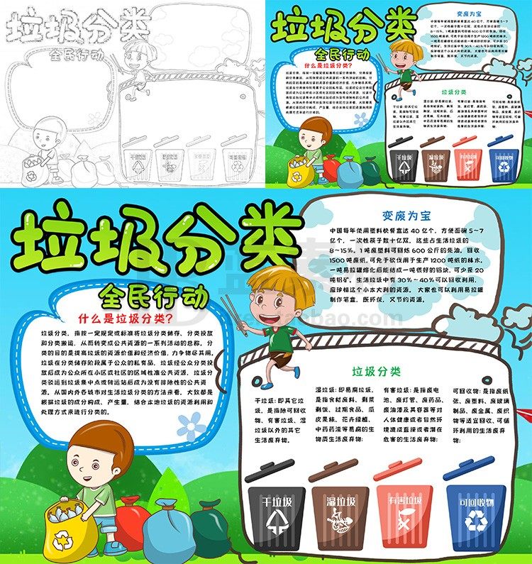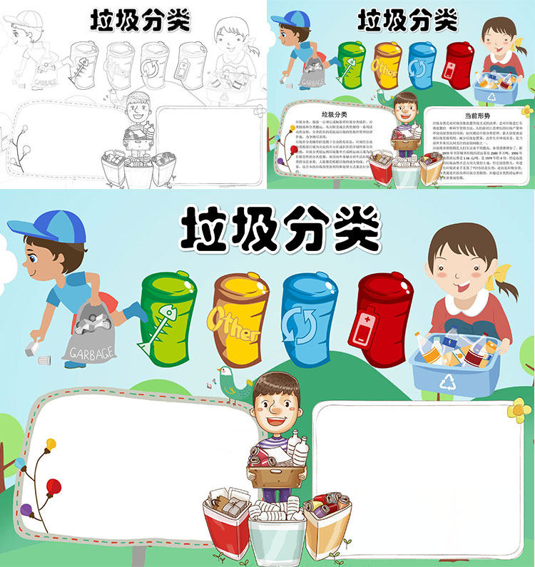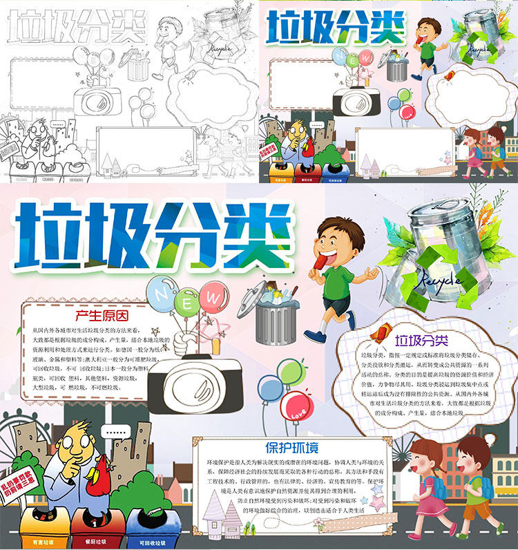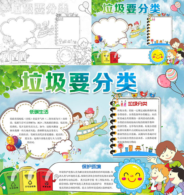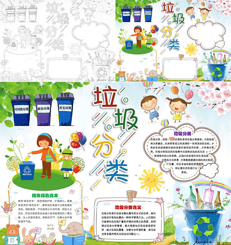垃圾分類小報word模板保護環(huán)境環(huán)保電子版黑白線稿涂色手抄報A3A4