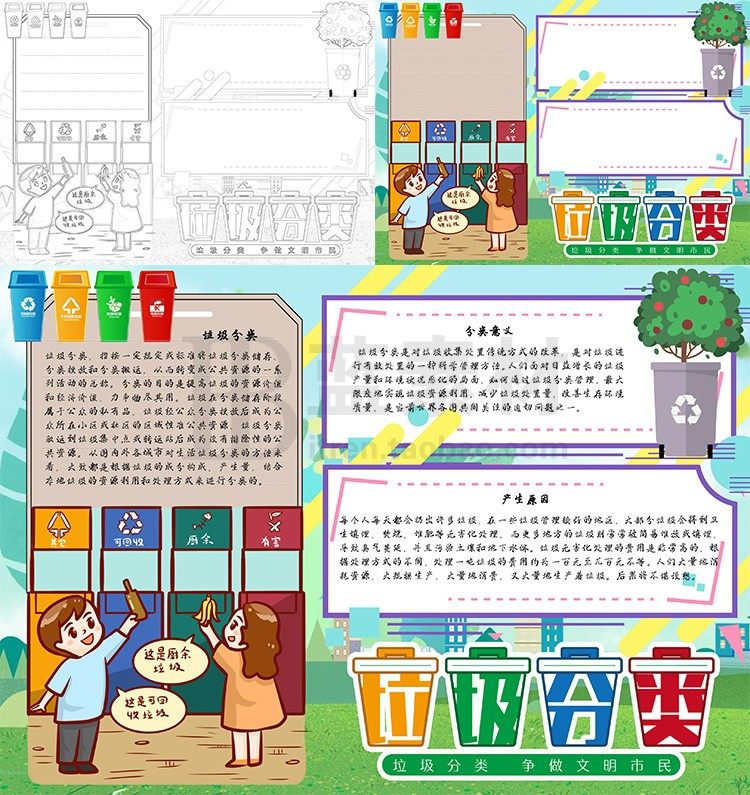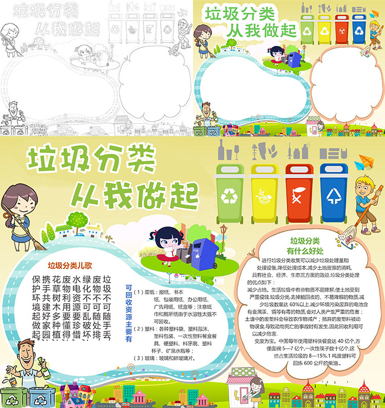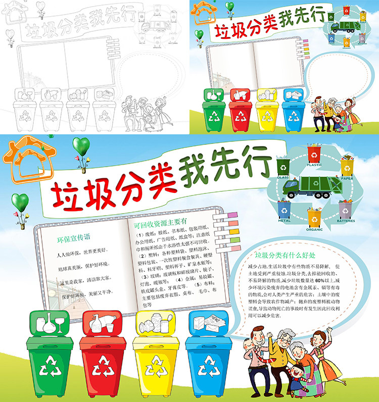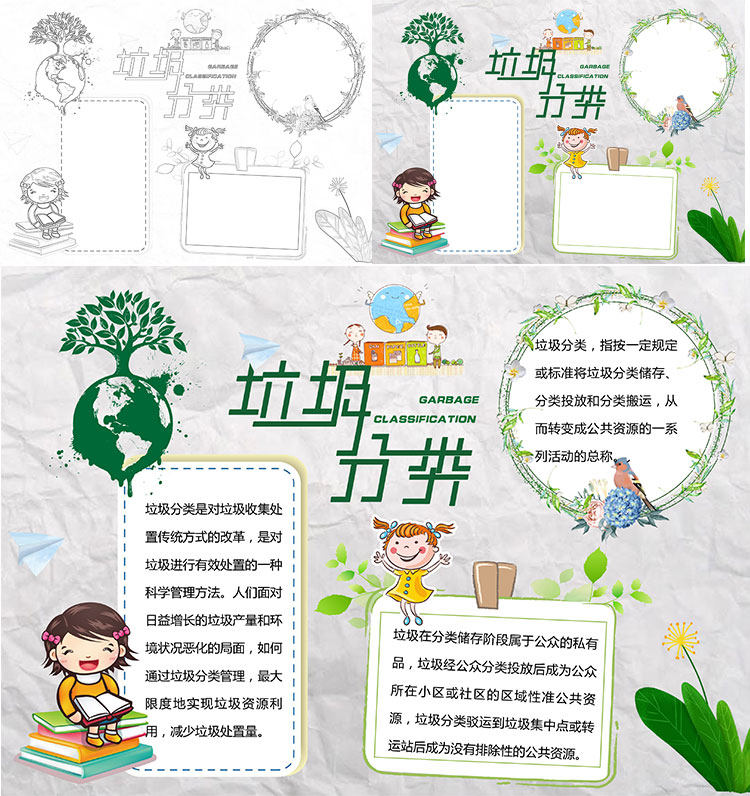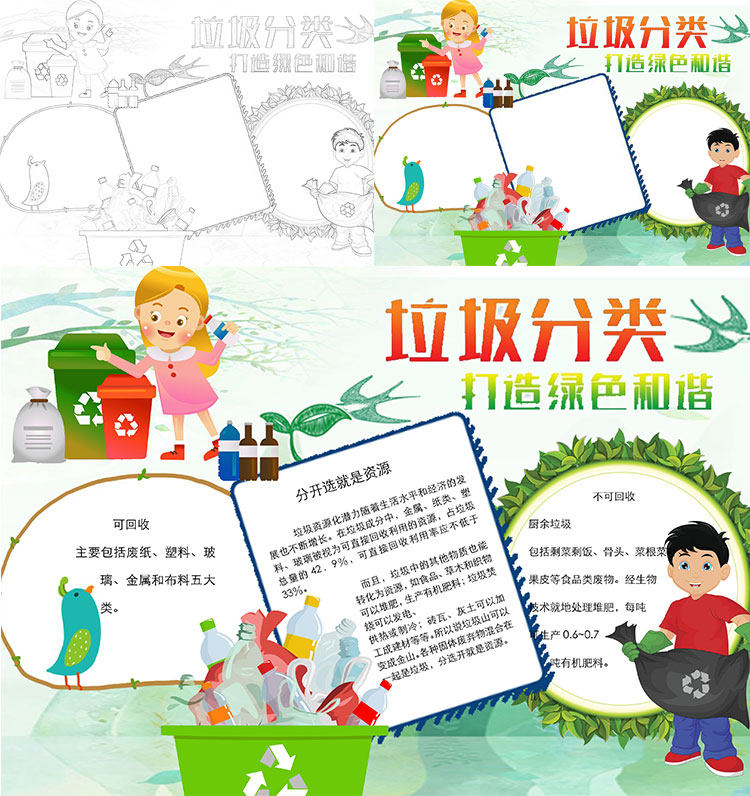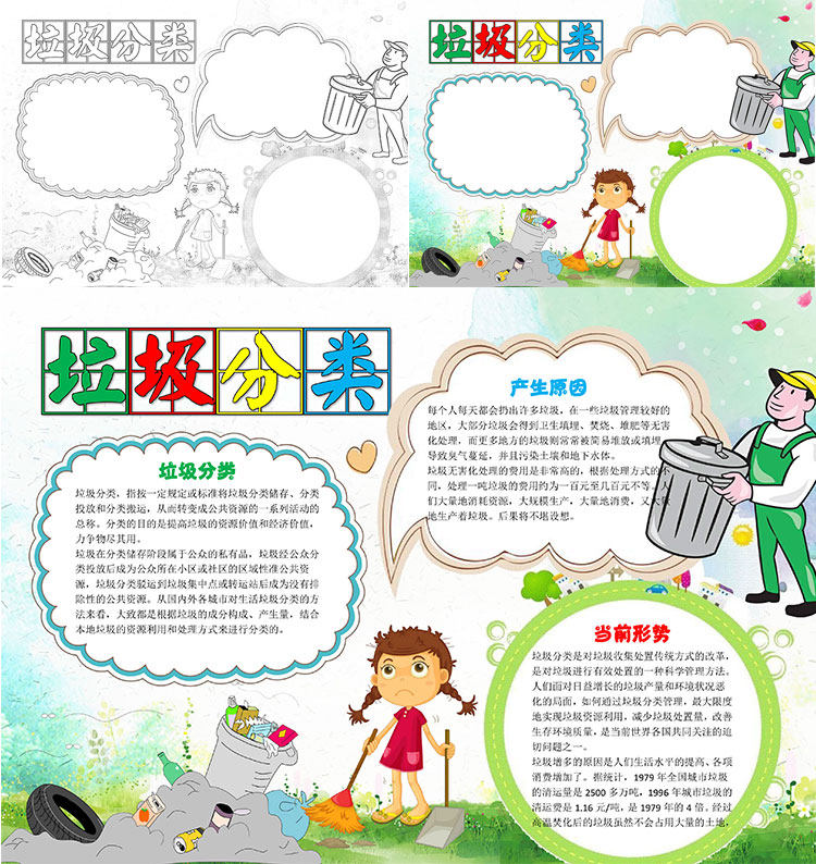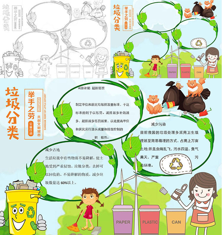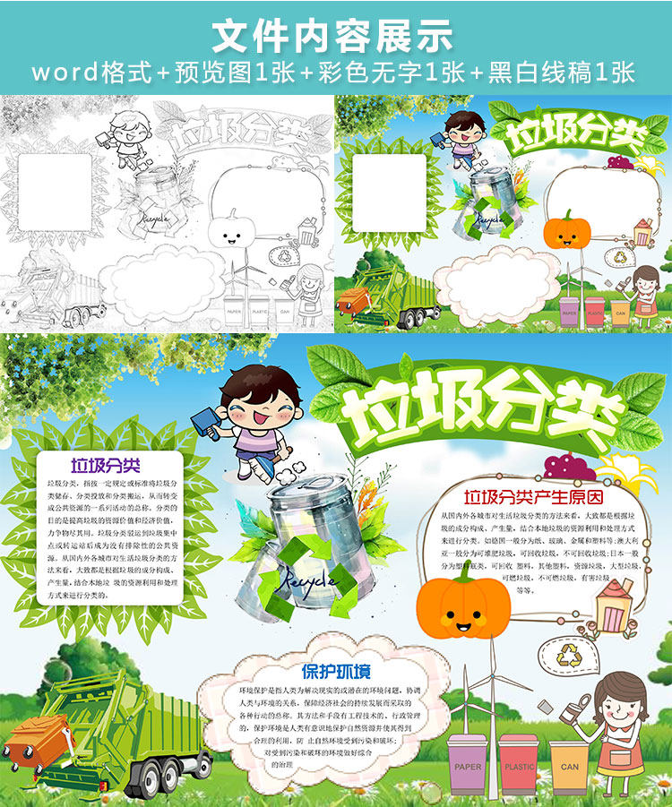 垃圾分類小報word模板保護環(huán)境環(huán)保電子版黑白線稿涂色手抄報A3A4