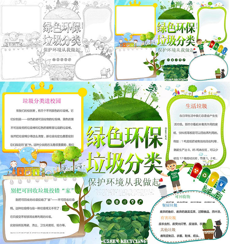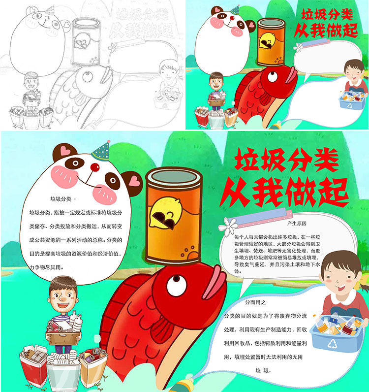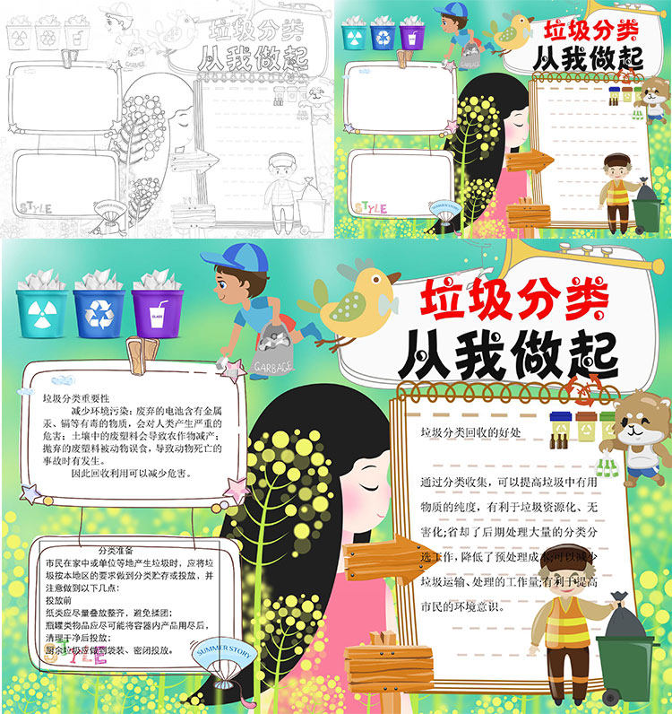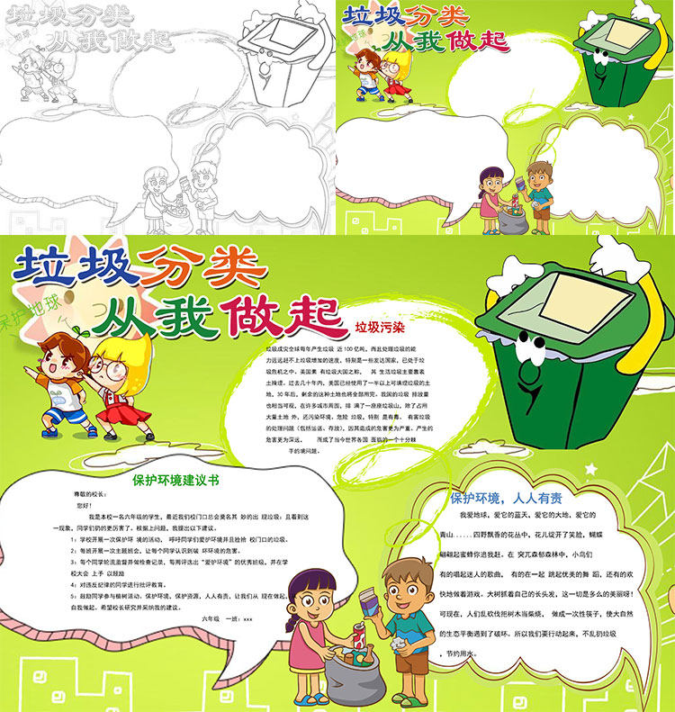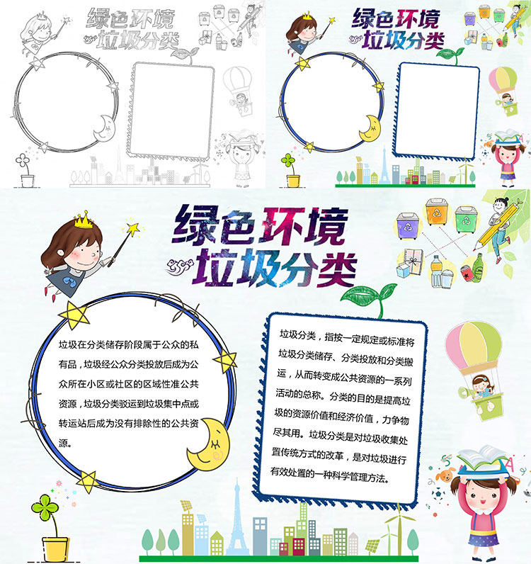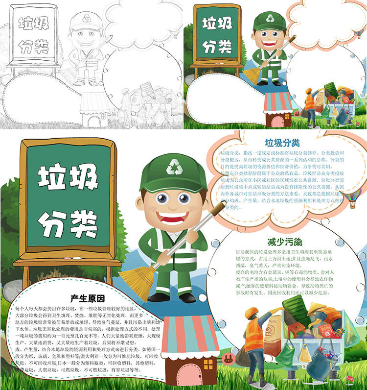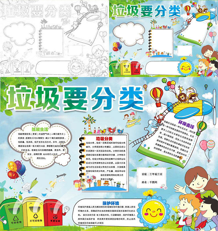 垃圾分類小報word模板保護環(huán)境環(huán)保電子版黑白線稿涂色手抄報A3A4