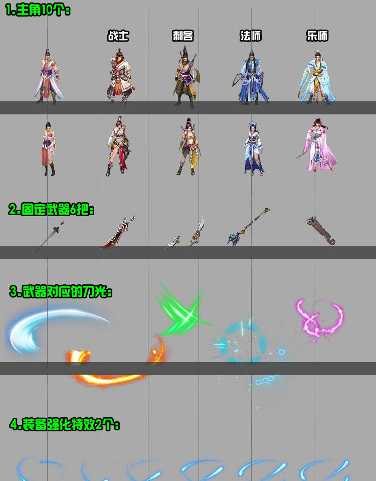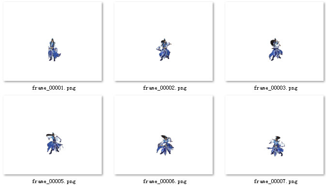 體積:解壓后122M 張數(shù):8246張透明png圖片,每幀為一張png 清晰:游戲用素材,請看示意圖 尺寸:圖片500*400,人物大小大概150*100像素